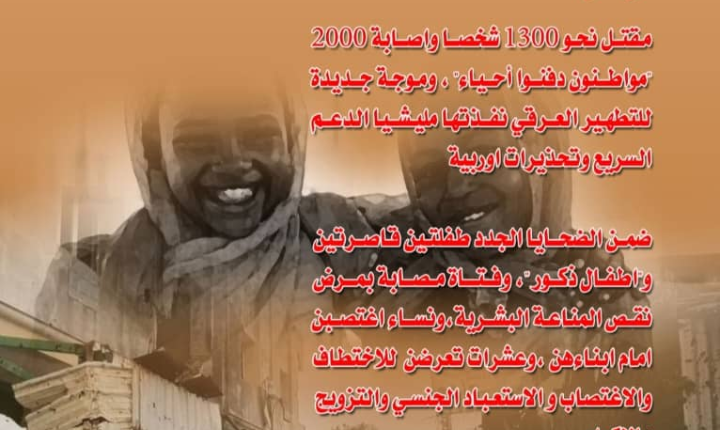 مقتل نحو1300شخصا،واصابة 2000 “مواطنون دفنوا أحياء” ،وموجة جديدة للتطهير العرقي نفذتها مليشيا الدعم السريع وتحذيرات اوربية