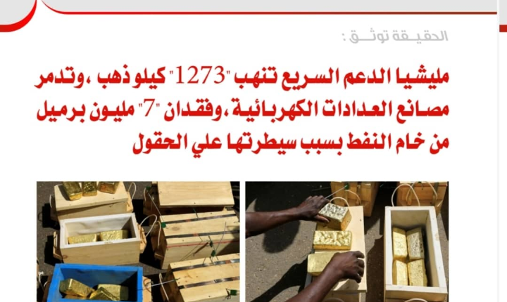 مليشيا الدعم السريع تنهب “1273”كيلو ذهب ،وتدمر مصانع العدادات الكهربائية