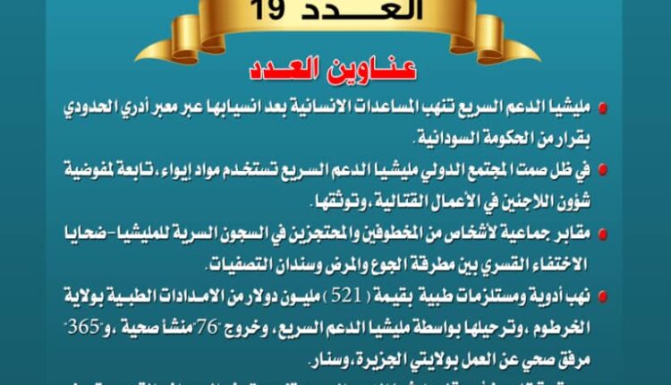 المجلة الالكترونية،الدورية،الاولى المتخصصة في توثيق جرائم مليشيا الدعم السريع بثلاث لغات لتكون مرجعية للمنظمات الإقليمية والدولية المعنية بحماية حقوق الانسان في العالم- “العدد19-سبتمبر2024