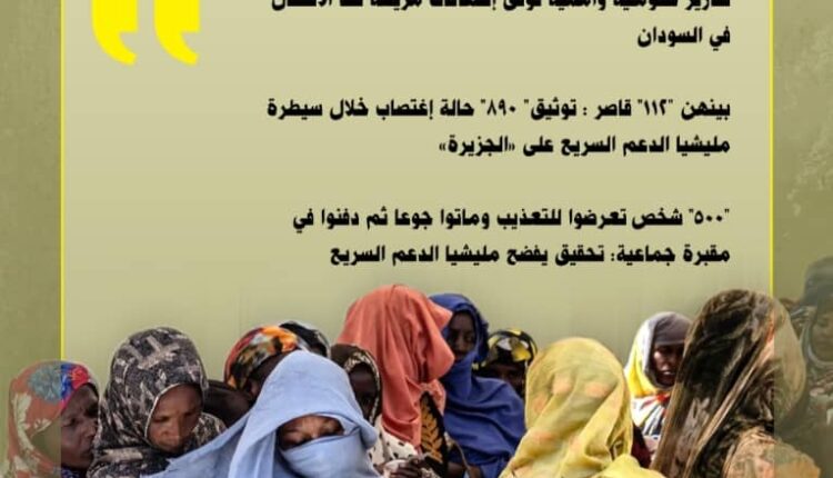 *بينهن “112” قاصر : توثيق” 890″ حالة غتصاب خلال سيطرة مليشيا الدعم السريع على «الجزيرة»*: