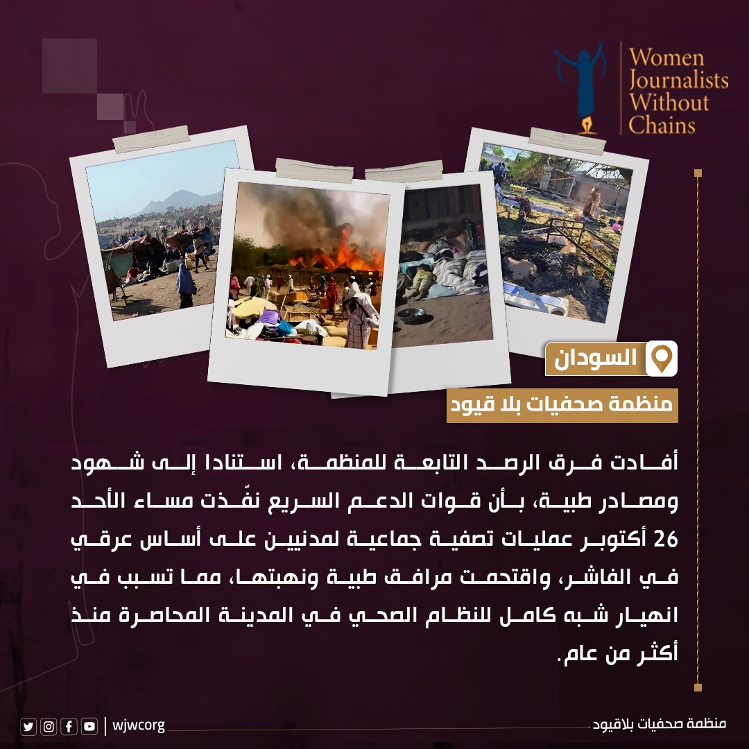 منظمة صحفيات بلا قيود : مليشيا الدعم السريع ترتكب جرائم تطهير عرقي في الفاشر
