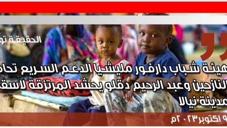 هيئة شباب دارفور مليشيا الدعم السريع تحاصر النازحين و عبد الرحيم دقلو يحشد المرتزقة لاسقاط،مدينة نيالا