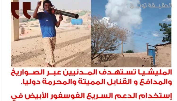 وقال خبير الاسلحة المقدم المتقاعد ابراهيم موسي لمؤسسة “FDRF ” ان قنابل الفسفور الابيض التي سقطت في جبل اولياء تم صناعتها محليا وان الدعم السريع يمتلك خبراء اجانب من سوريين و غيرهم لدية خبرة في صناعه هذه القنابل الفوسفورية وهذا السلاح لا يجوز استخدامه في حرب المدن وفقا لقواعد الحرب .